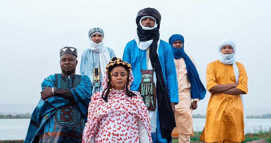 Les cinq musiciens du groupe Aratan N’Akalle (« les enfants du pays » en langue tamasheq) se sont rencontrés en 2012, dans un camp de réfugiés où ils avaient fui le conflit armé touchant le nord du Mali. Aujourd’hui, ils portent à travers le monde les couleurs de la culture tamasheq, dans un mélange rythmé de blues et de rock. Des voix profondes, des riffs de guitares et des mélodies inspirées !