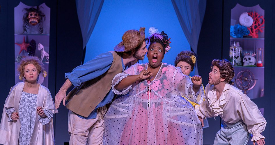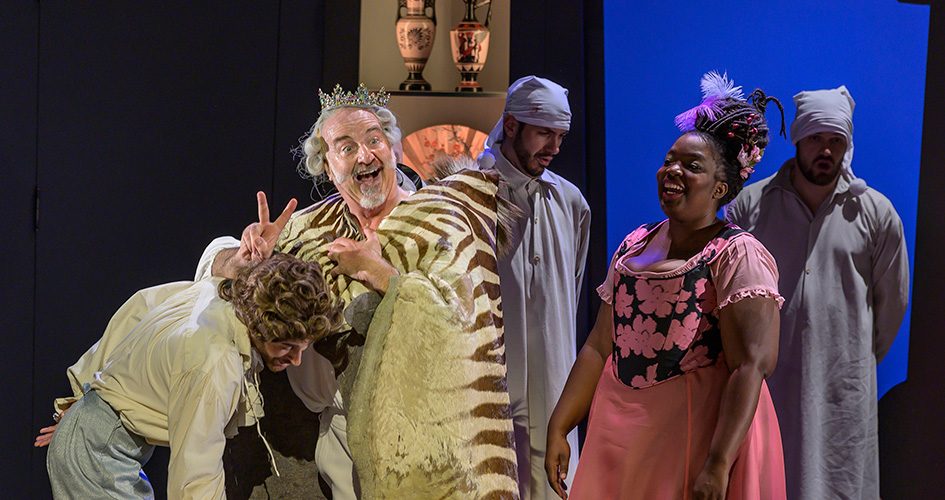 Sur des airs de Rameau, Charpentier ou Montéclair, chanteurs et musiciens s’en donnent à cœur joie pour inventer un spectacle aussi fou que le Baron. Les costumes sont magnifiques, les voix somptueuses – dans le rôle de la femme du Baron, la soprano Axelle Fanyo fait des étincelles – et tout dans ce spectacle n’est qu’espièglerie et trouvailles scéniques : un enchantement !