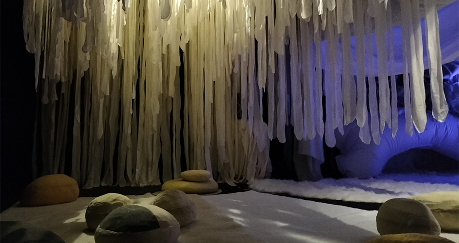 On enlève nos chaussures, et on entre dans un monde merveilleux : un espace apaisant aux lumières tamisées, qui nous accueille tel un cocon de coton, de laine et de fourrure. Ici, les très jeunes enfants (et les adultes qui les accompagnent) peuvent librement s’allonger, explorer ce qui les entoure, et se laisser émerveiller par les visions et les sons qui se succèdent. Un moment hors du temps, pour partager avec les tout-petits une expérience sensorielle à la fois stimulante et relaxante !
