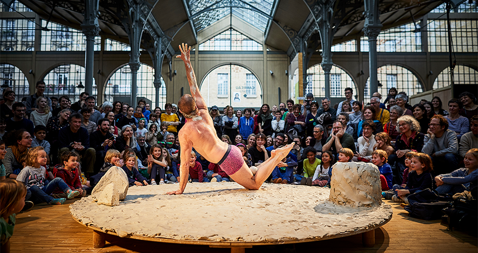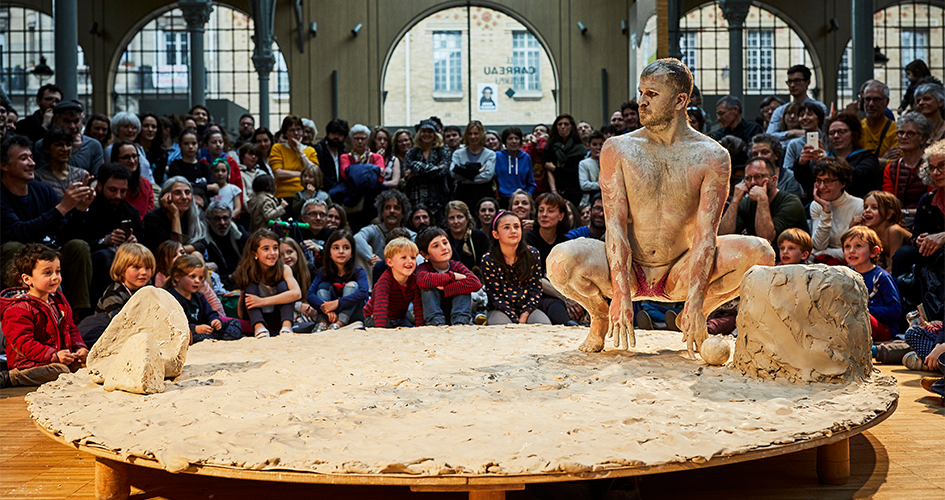 Sur une scène recouverte d’argile, dans son beau costume, un jongleur cumule les difficultés : ne pas se salir, ne pas faire tomber sa balle, tout en tentant des figures de plus en plus complexes. Mais ça colle, ça glisse, ça tache… et ça ne se passe pas comme prévu ! Ça finit en caleçon de bain : hop dans la gadoue ! Sur les sons mélodieux d’une harpe, c’est drôle et réjouissant pour petits… et grands !