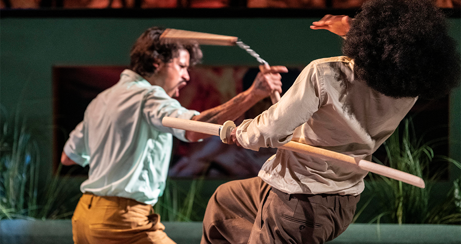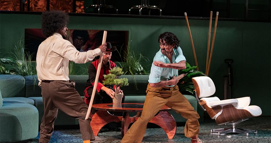 Jakop Ahlbom, le spécialiste néerlandais du théâtre gestuel qui nous avait enchantés avec Horror, signe une ode aux films d’action à la fois réjouissante et piquante ! On s’amuse des multiples clins d’œil au cinéma de Jackie Chan, des frères Coen ou de Quentin Tarantino et on se laisse emporter par l’époustouflante virtuosité des six acteurs-danseurs-cascadeurs, qui enchaînent les scènes très physiques avec une aisance déconcertante. On en reste K.O. !