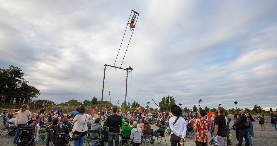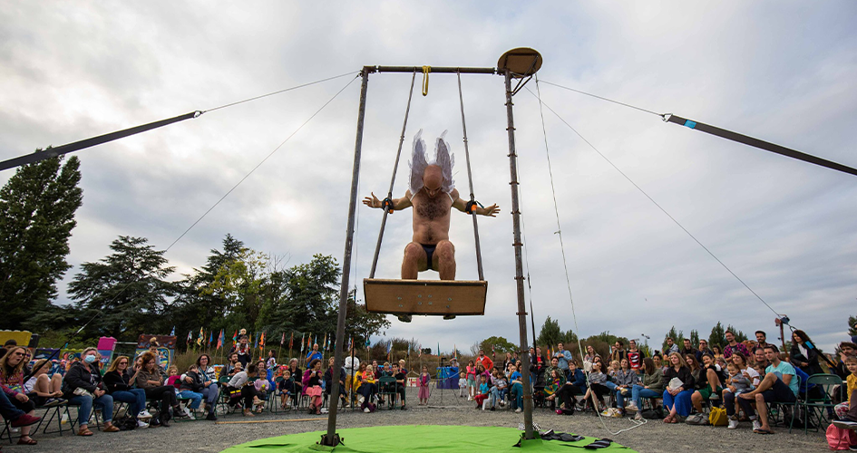 En Estonie, il existe un sport appelé « le kiiking », qui consiste à grimper sur la plus grande balançoire possible… et à faire un tour complet autour de l’axe ! Avec sa balançoire géante de 12 mètres de haut, l’acrobate Sidney Pin va tenter de relever le défi de cette rotation à 360°. Mais pour quoi faire, au fait ? Avec son humour pince-sans-rire, Sidney partage avec nous ses questionnements sur le cirque, la virilité, les héros Marvel ou encore Tina Turner, au cours d’un spectacle de cirque introspectif et drolatique.