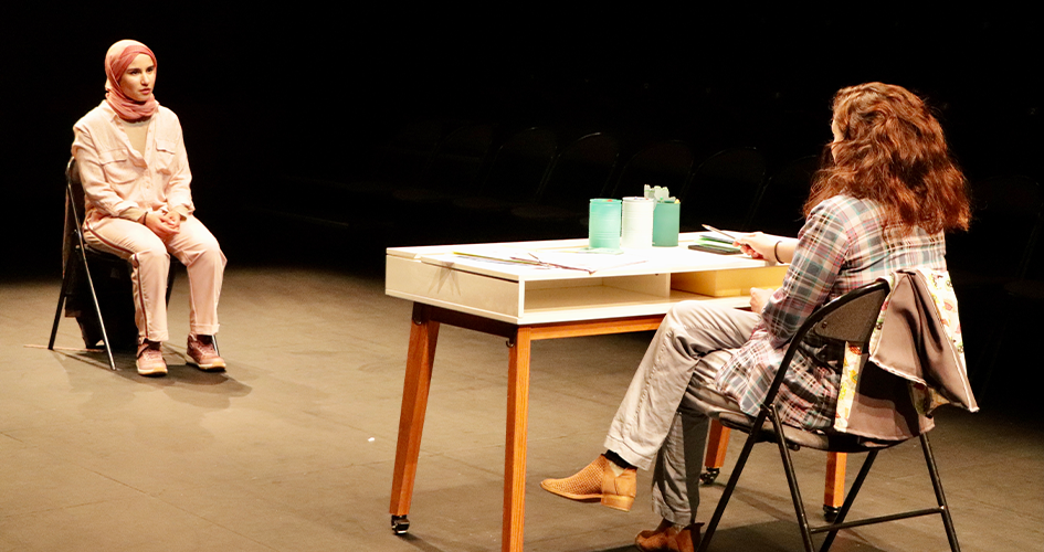 Yasmina, employée modèle d’une crèche d’un quartier populaire, est en congé parental depuis des années. Elle décide un jour de revenir travailler. Devant son refus d’enlever son voile islamique à la crèche, Francisca, la directrice, la congédie. Yasmina porte plainte pour discrimination. La machine médiatique se met en branle et tous les habitants du quartier prennent peu à peu parti pour l’une ou pour l’autre… Installés autour de la scène, on observe le conflit se mettre en place et on entend chacun de ces personnages tiraillés entre leurs croyances, leurs fidélités et leurs idées.
