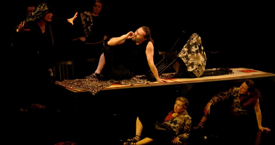 De Eudes Labrusse, d’après Homère, Sophocle, Euripide, Hésiode, Virgile, Offenbach etc, etc Mise en scène Jérôme Imard, Eudes Labrusse Avec Catherine Bayle, Audrey Le Bihan, Hoa-Lan Scremin, Laurent Joly, Nicolas Postillon, Loïc Puichevrier, Philipp Weissert, Christian Roux (musique de scène piano) Lumière Laurent Bonacorsi Costumes Cécile Pelletier, Aurélie Penuizic