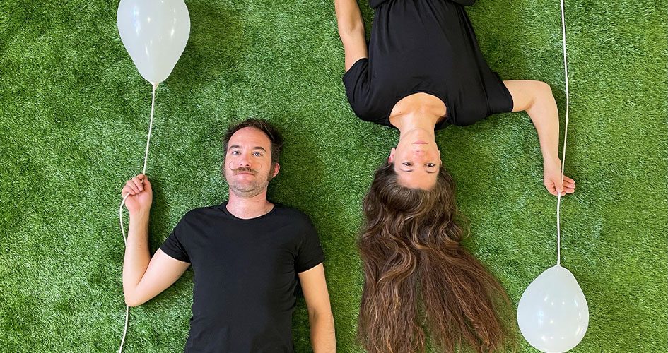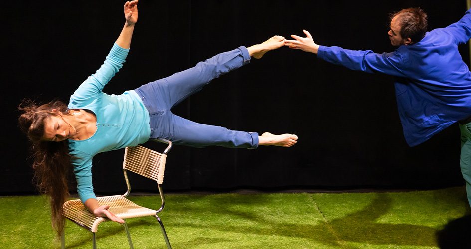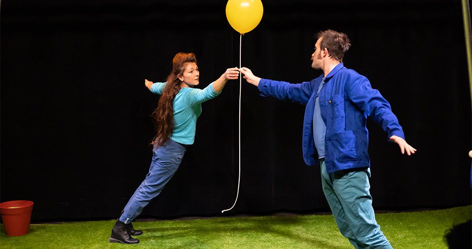 Pauline est acrobate aérienne et danseuse de l’apesanteur, Nicolas est jongleur et illusionniste. Sur un grand carré de gazon vert, autour d’un portique où Pauline se balance et se suspend, ils nous transportent dans un univers où les corps et les objets déjouent les lois de la gravité. C’est beau, c’est magique, c’est poétique : un vrai coup de cœur !