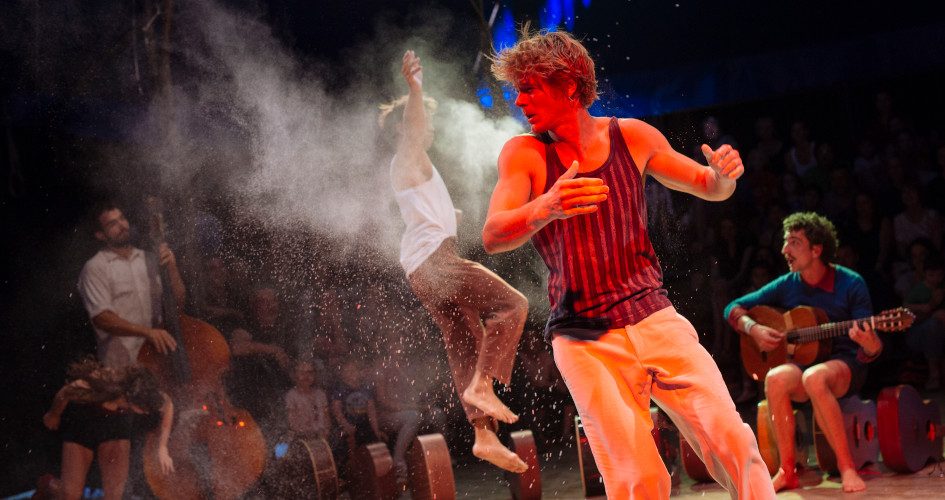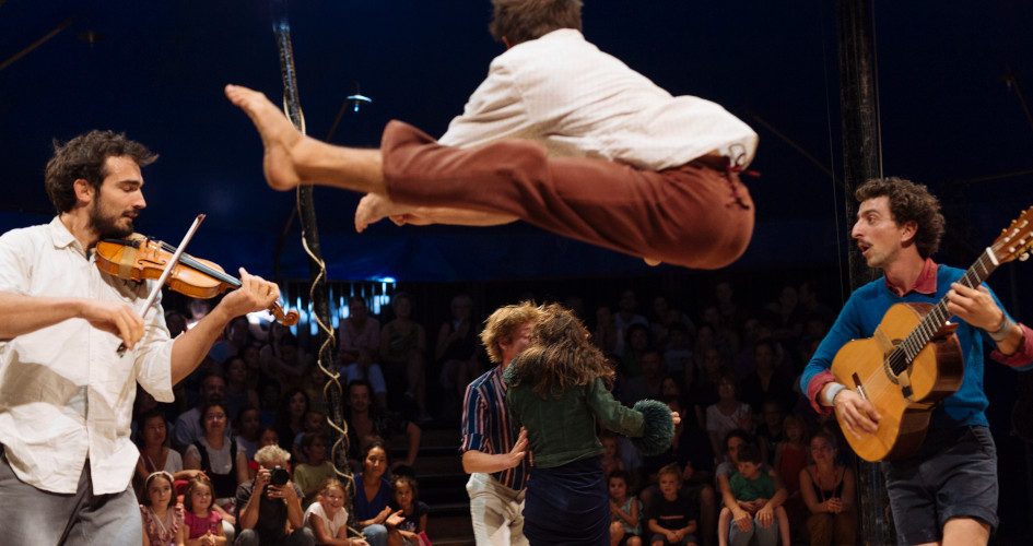 La guitare est la star de ce déferlement de prouesses : jonglage, portés acrobatiques, et même pirouettes aériennes, elle devient personnage et acrobate à part entière. Dans une ambiance tzigane où la musique ne s’arrête jamais, on rit de ces expériences parfois absurdes, on est envoûté par un superbe solo de danse, et l’on retient son souffle devant un numéro de voltige aérienne époustouflant. Léger et réjouissant, Les Dodos, c’est le spectacle qu’il nous faut pour bien commencer le printemps !