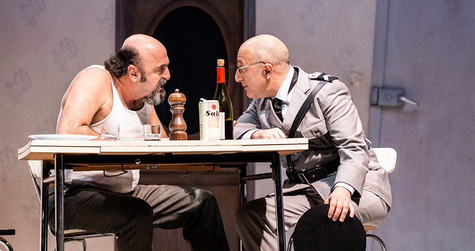 On ne paie pas ! On ne paie pas ! (1974), c’est une incroyable comédie sociale que l’on doit à Dario Fo (prix Nobel 1997) et à Franca Rame. Parfaitement à leur aise dans ce théâtre qui aborde des sujets sociaux avec un sens inouï du comique et de la bouffonnerie, les cinq interprètes s’en donnent à cœur joie dans un décor tout de guingois. Les gags s’enchaînent, le message passe : une pièce réjouissante qu’on pourrait croire écrite pour aujourd’hui !