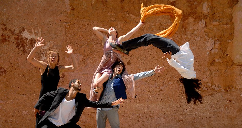 Venus de France et du Maroc, trois hommes et deux femmes sont réunis autour d’un grand échafaudage. Spécialistes de trapèze, des sangles ou du parkour, ils explorent toutes les possibilités de cette structure précaire ! De l’envol à la chute, de l’étreinte à la lutte, ils partagent avec nous leurs prouesses mais aussi leurs interrogations sur les origines et l’identité. Un spectacle plein d’émotions, tissé de prises de parole vibrantes en français ou en arabe.