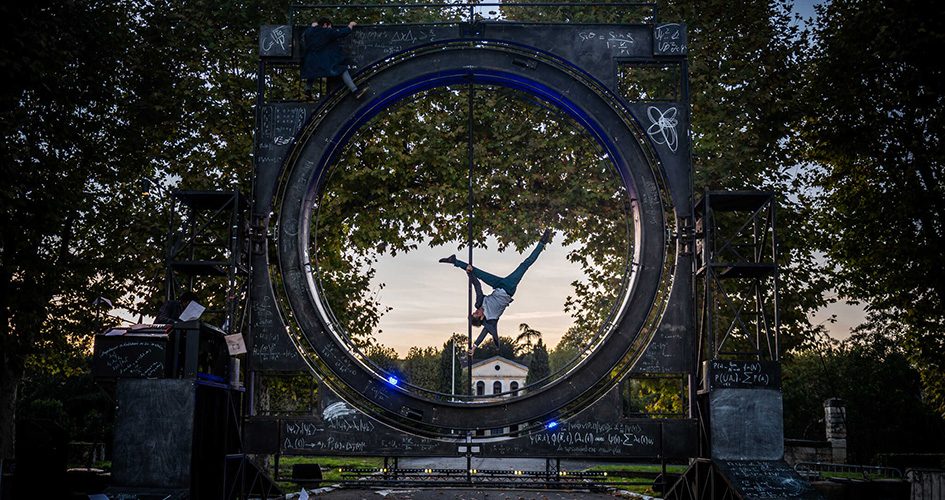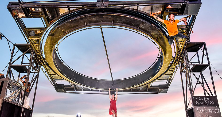 Quatre acrobates, une danseuse et une immense structure métallique