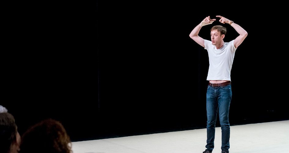 Dans une fausse conférence vraiment hilarante, l’acteur Romain Daroles va tout nous dire sur la pièce : les personnages, l’histoire, le contexte, nous allons tout comprendre et beaucoup nous amuser ! Aussi à l’aise avec les alexandrins qu’avec les jeux de mots à deux euros, ce comédien à l’enthousiasme communicatif nous transmet l’essentiel : un amour profond pour le texte de Racine. Ce seul-en-scène fait un carton partout où il passe !
