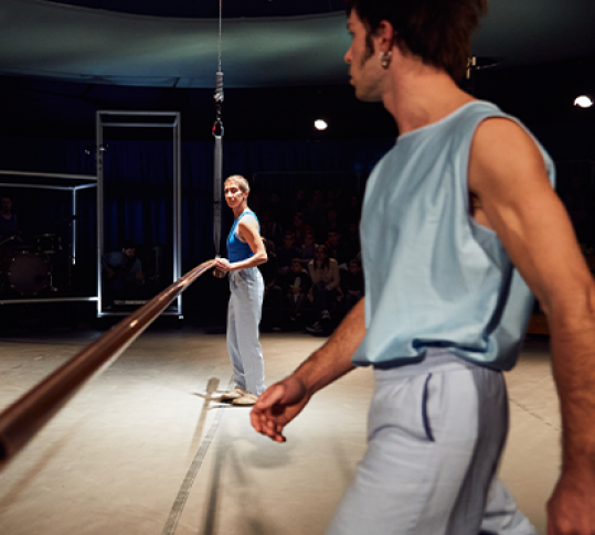Comment faire du cirque lorsque lever le bras est douloureux ? Chacune de ces femmes aura imaginé avec Alexandre Fray un moment unique, imprévisible, basé avant tout sur la confiance en l’autre. Ici, l’exploit ne réside pas dans une figure parfaitement exécutée, mais dans la beauté d’une tentative, d’un lâcher-prise : un instant suspendu d’humanité, où la notion de risque prend une toute nouvelle forme.