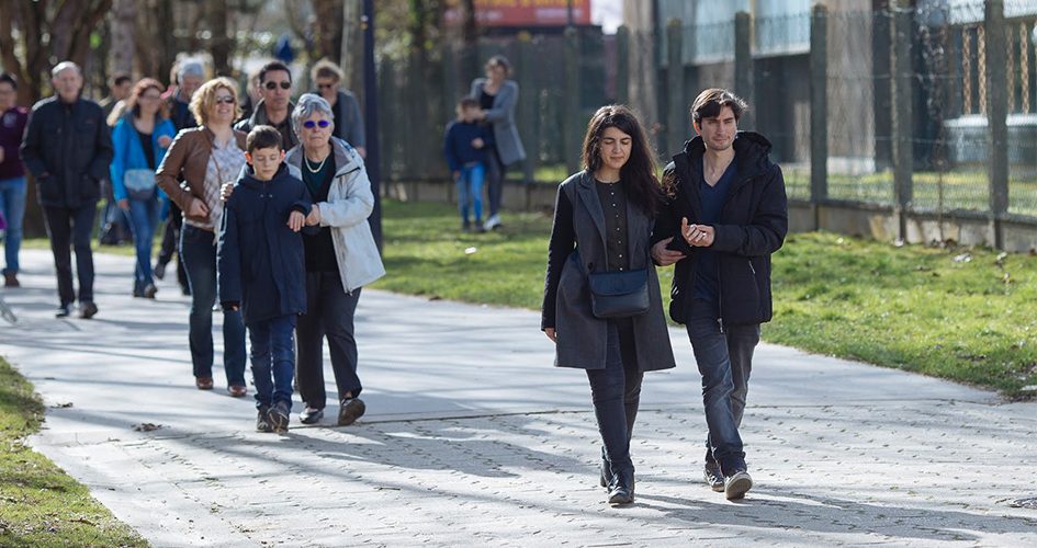En quelques pas, elles évoquent des histoires d’eau, de pierres, de béton, de plantes, d’hommes et de femmes pour tisser un récit itinérant polyphonique.