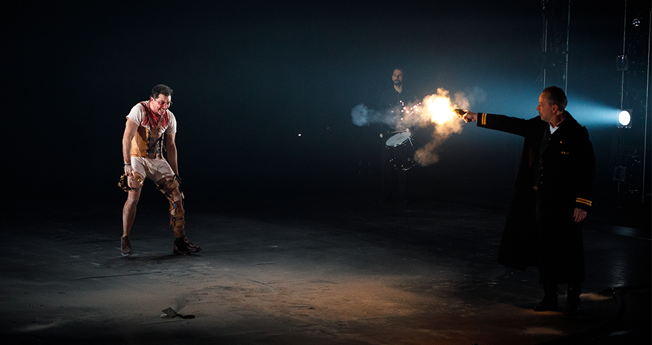 C’est une mise en scène engagée et spectaculaire que nous proposent Guillaume Séverac-Schmitz et sa troupe. Métamorphosé en un Richard qui devient infirme, le formidable comédien Thibaut Perrenoud, que nous accueillons régulièrement à L’Azimut, n’a de cesse de nous prendre à témoin de ses crimes. La fumée envahit la scène, le décor bouge, les comédiens, en costumes contemporains, passent d’un rôle à l’autre avec une rapidité stupéfiante. Shakespeare apparaît dans toute sa force : épique et accessible !