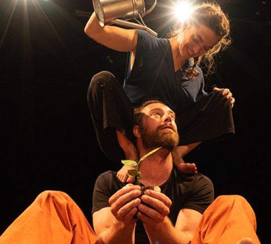 Sur scène, un frère et une sœur décident de planter une graine qu’ils regardent pousser et jouent avec un gros sac de terre. Ils se chamaillent, se disputent, se réconcilient, mettent de la terre partout… Tout est prétexte à la danse, aux portés et aux acrobaties !