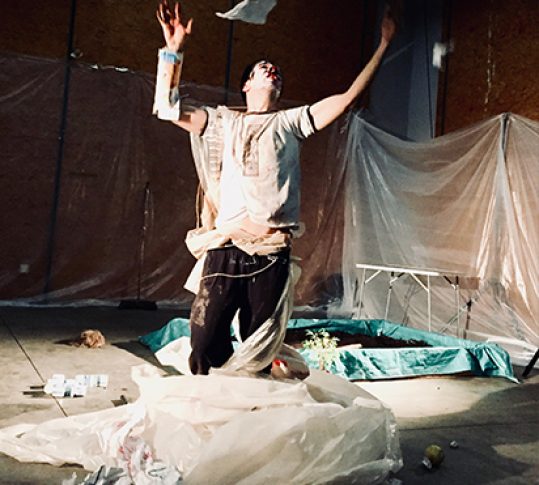 Mais c’est quoi ici ? Une décharge ? Une déchèterie ? Un purgatoire ? Au milieu des pneus et des déchets surgissent quatre étranges spécimens de l’espèce humaine. Menés par un vieux barbu aux allures de clochard, mi-Dieu mi-clown, ils vont repartir à zéro, le grand zéro, le commencement du commencement.