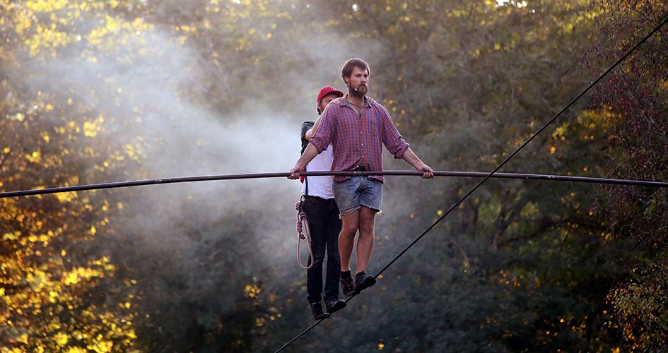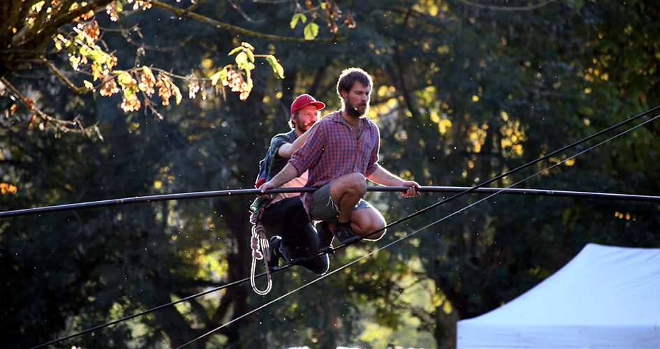 Et le spectacle, dans tout ça ? Présenté le vendredi soir et le samedi après-midi, Une pelle, c’est une ascension pour deux comédiens. Ils s’équipent, s’agrippent l’un à l’autre et prennent le départ sur un fil qui va les emmener à dix mètres de hauteur. C’est simple, spectaculaire, métaphysique et surtout très drôle. Une création inclassable !