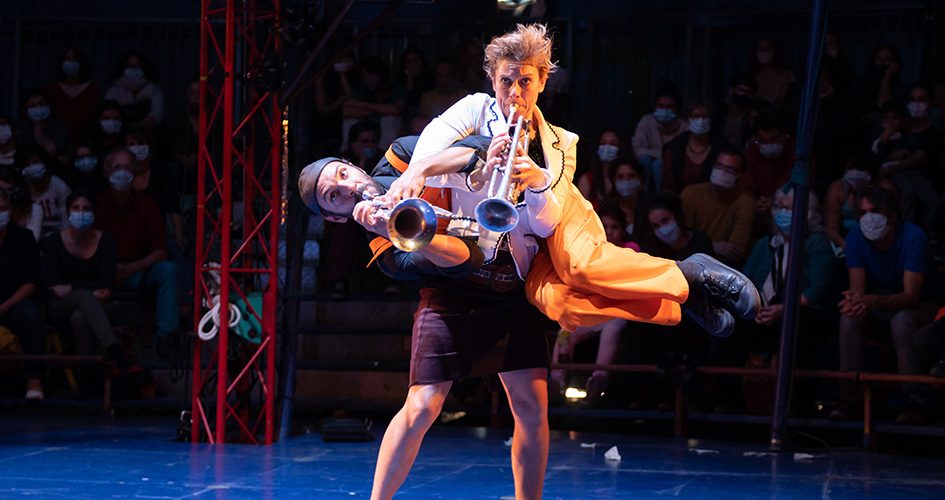Venir voir (V)îvre, c’est un peu comme aller chez des copains. Sous le chapiteau, on commence par un apéro avec les onze acrobates-musiciens… et on pourrait bien finir avec une trompette entre les mains ! imaginé par la « fanfare cirque » Circa Tsuïca, (V)îvre est un spectacle dans lequel on va pouvoir participer, pour mieux rire et s’émerveiller.