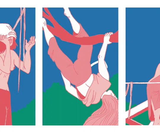 Women weave the land, cela veut dire « les femmes tissent la terre » : c’est dans un délicat écrin de voilages et de fils, telle une toile tendue à ciel ouvert, que quatre fildeféristes et une chanteuse nous donnent rendez-vous ! Autour d’une étonnante structure qui tourne sur elle-même, elles nous offrent un moment de rêverie et de contemplation, tissé de figures acrobatiques autant que de musique. On perd la notion du temps, et on se surprend à regarder autrement le paysage qui nous entoure : envoûtant !