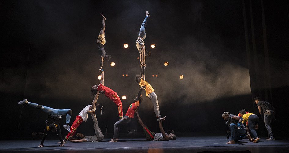 Ils sont treize, ils arrivent de Guinée et ils sont d’une formidable virtuosité. Avec Yé !, ils nous donnent un aperçu de leur talent, dans une création-événement mêlant portés acrobatiques, pyramides humaines et danses urbaines ! On se laisse emporter par leur énergie brute, mise au service d’un plaidoyer vibrant pour le partage de l’eau.