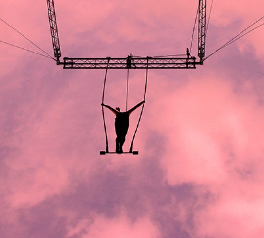 Le public est invité à s'allonger sous le trapèze avec le ciel pour toile de fond. Le dispositif trapèze-sieste vous embarque, il vous berce. Un temps de détente insolite !