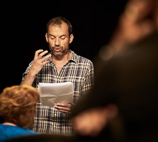 Un tournage de cinéma installé sur scène, une histoire incroyable, une tempête de neige : voilà un spectacle qui nous embarque dès la première minute ! Au décès de son père, Ilia, un jeune réalisateur, découvre que ce peintre reconnu était en fait un véritable escroc. Entre révélations et souvenirs, l’enquête bascule dans le monde de l’imaginaire…