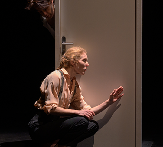La scène est vide, avec une porte pour seul décor. Deux femmes entrent. Leur trouble, leur émotion est palpable. Qui sont-elles ? Qu’est-ce qui se joue entre elles ? D’un souffle, d’un geste, elles accueillent en elles d’autres présences, d’autres voix.
