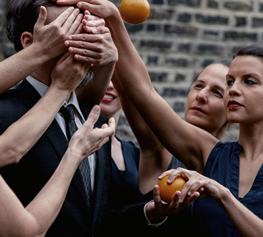 Chignons serrés, cravates et robes du soir : chez Gandini Juggling, une compagnie emblématique du jonglage mondial, on a la classe et ça se voit ! Sur une réjouissante bande-son entre airs d’opéra, musique country et pop, sept femmes et deux hommes enchaînent les numéros de jonglage synchronisés.